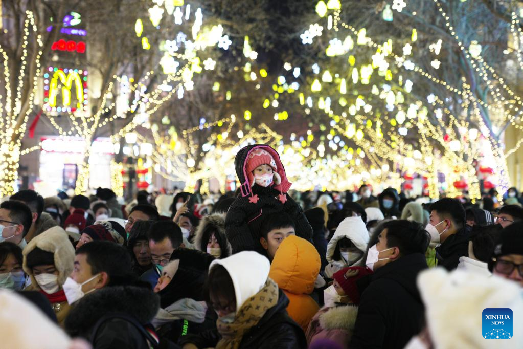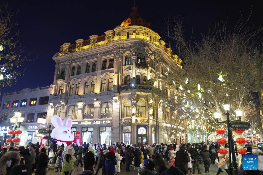 Tourists visit the Central Street in Harbin, northeast China's Heilongjiang Province, Jan. 25, 2023. Heilongjiang has attracted legions of tourists during the Spring Festival holiday. (Xinhua/Wang Jianwei)