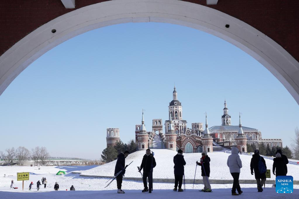 Tourists ski at the Volga Manor in Harbin, northeast China's Heilongjiang Province, Jan. 26, 2023. Heilongjiang has attracted legions of tourists during the Spring Festival holiday. (Xinhua/Wang Jianwei)