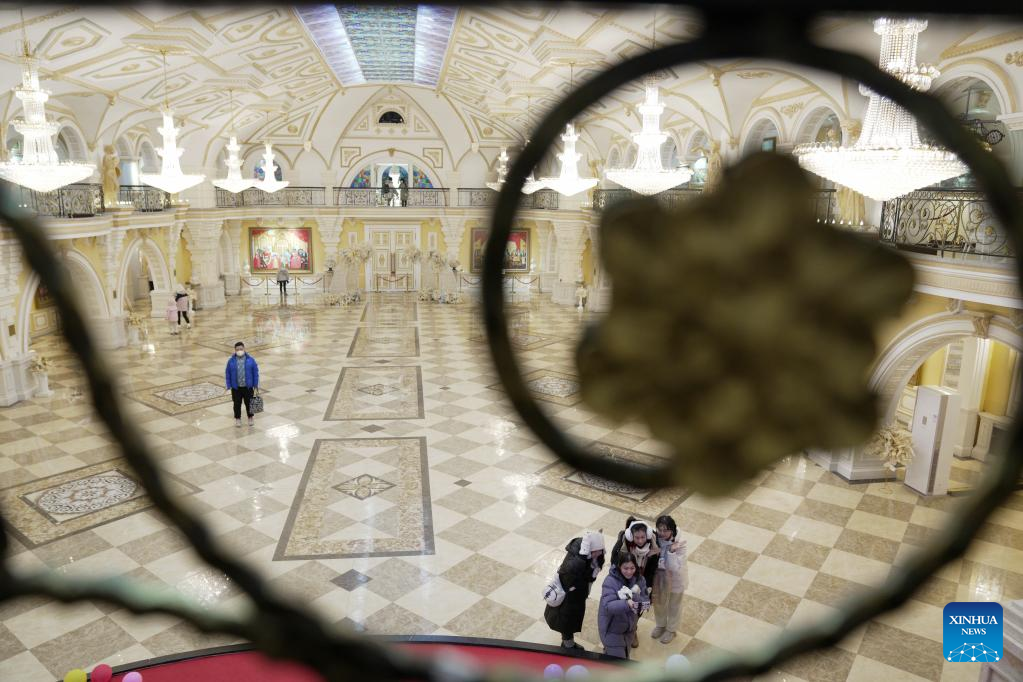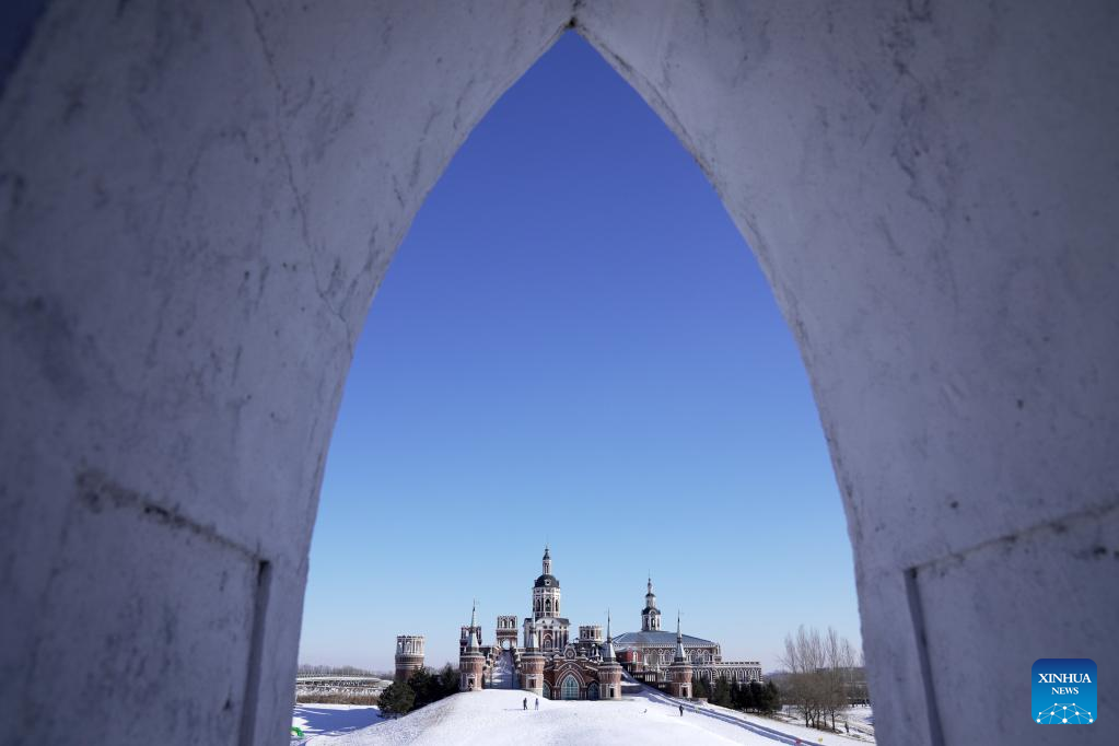 People visit the Volga Manor in Harbin, northeast China's Heilongjiang Province, Jan. 26, 2023. The Volga Manor, a Russian culture-themed park, turned into an ice and snow world during the Spring Festival, attracting lots of visitors. (Xinhua/Wang Jianwei)