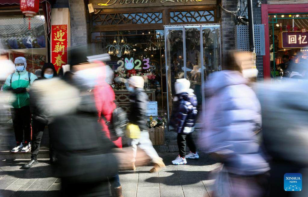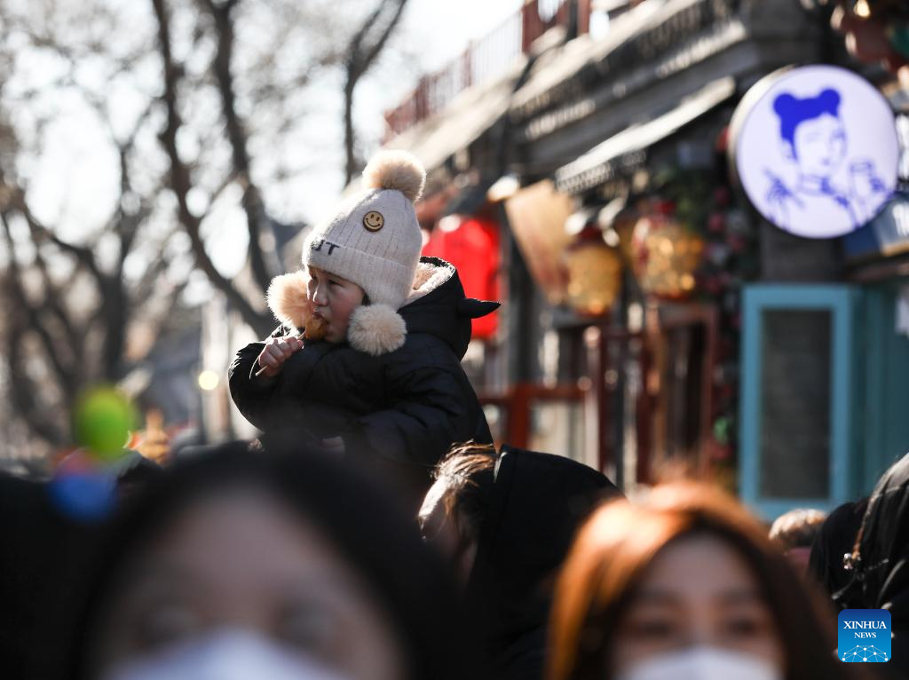People visit the Nanluoguxiang Lane in Beijing, capital of China, Jan. 27, 2023. People enjoy the last day of the Spring Festival holiday on Friday. (Xinhua/Lan Hongguang)