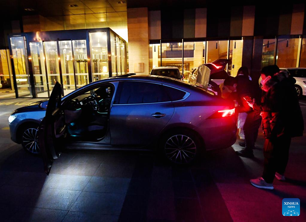 Ride-hailing driver Liu Junjie picks up passengers of his first order on the first working day after the Spring Festival holiday in Beijing, capital of China, Jan. 28, 2023. Saturday marked the first day of work after the Spring Festival holiday in China. (Xinhua/Zhang Chenlin)