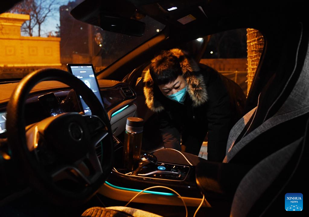 Ride-hailing driver Liu Junjie prepares for work on the first working day after the Spring Festival holiday in Beijing, capital of China, Jan. 28, 2023. Saturday marked the first day of work after the Spring Festival holiday in China. (Xinhua/Zhang Chenlin)