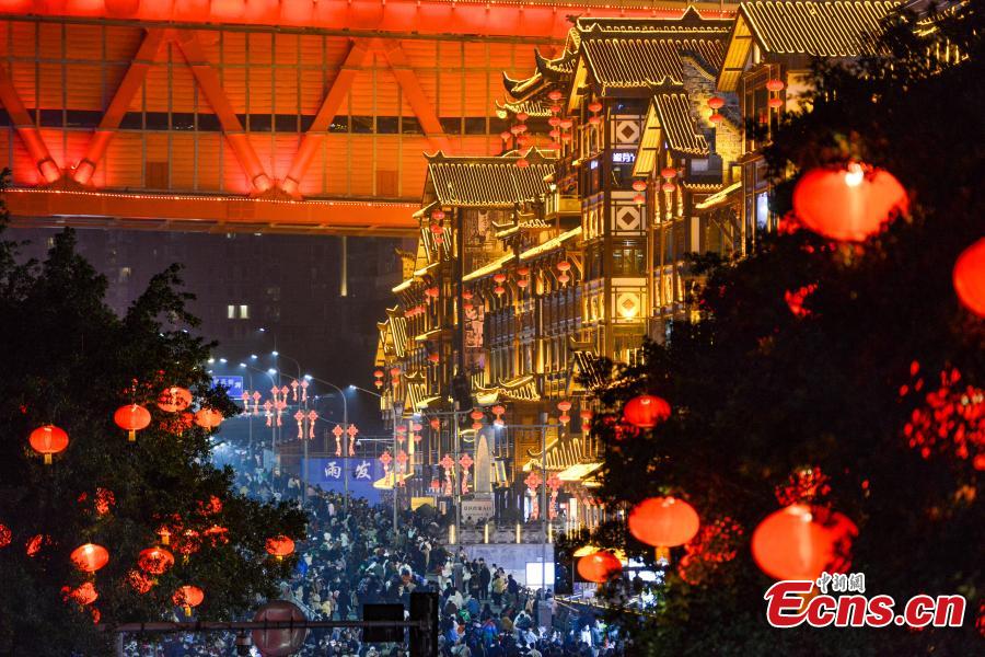 Tourists visit Hongya Cave in southwest China's Chongqing at night, Jan. 26, 2023. (Photo: China News Service/He Penglei)