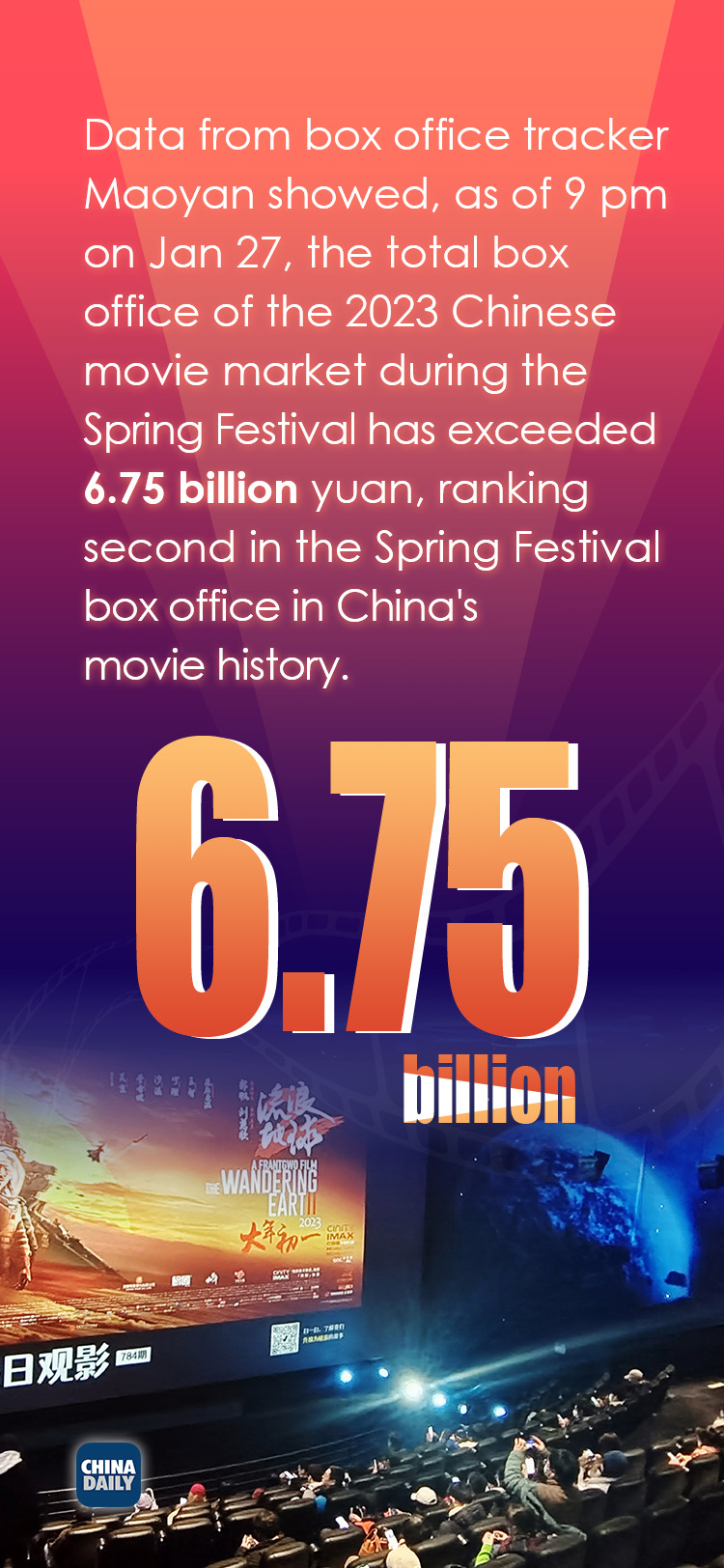 - China's movie box office tops 6.7 bln yuan during Spring Festival holiday
