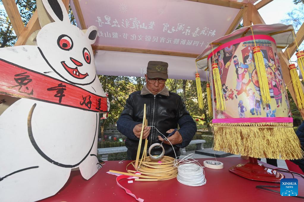 A craftsman makes lanterns in Xincheng ancient town of Xiuzhou District in Jiaxing, east China's Zhejiang Province, Jan. 29, 2023. The Aoshan Lantern Festival, which has a history of hundreds of years, kicked off here on Sunday. (Xinhua/Xu Yu)