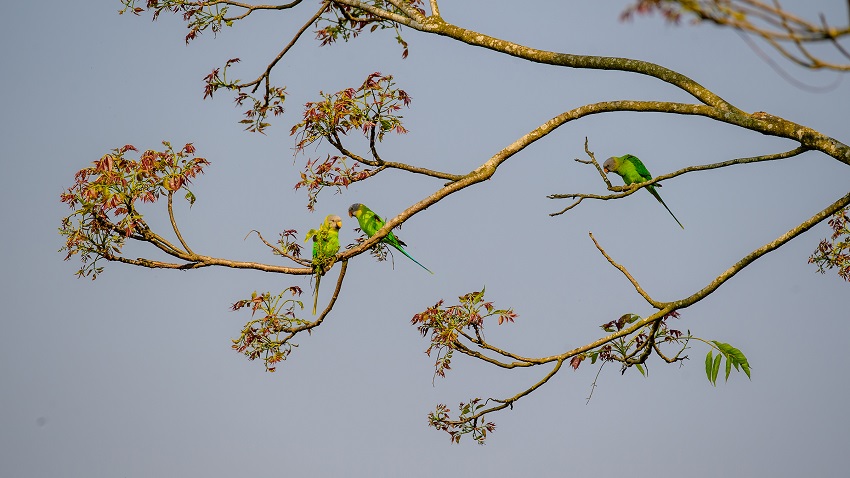 Photo shows blossom-headed parakeets in Ruili city, southwest China’s Yunnan Province. (Photo/Sun Dongjun)