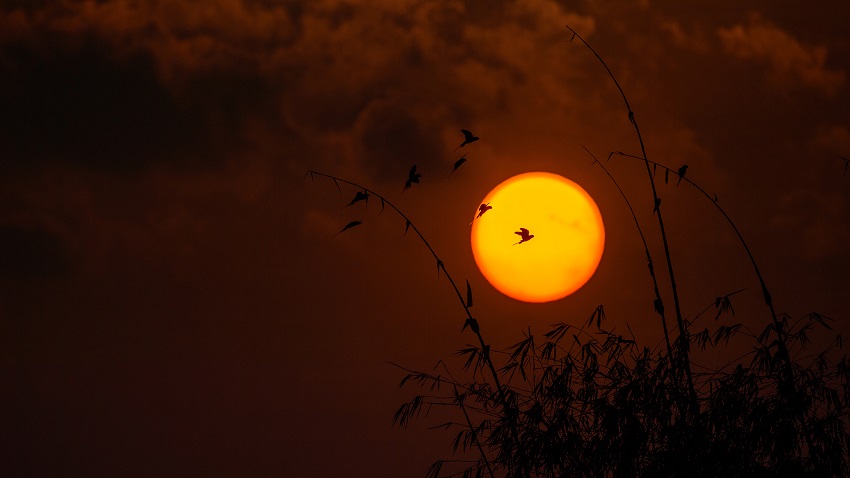 Hundreds of rare blossom-headed parakeets silhouetted against sunset in SW China’s Yunnan (5)