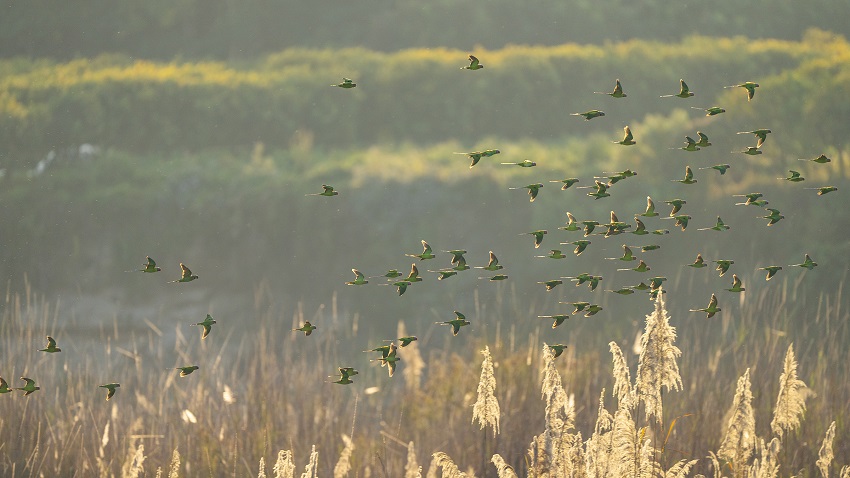 Photo shows hundreds of blossom-headed parakeets in Ruili city, southwest China’s Yunnan Province. (Photo/Zhu Bianyong)