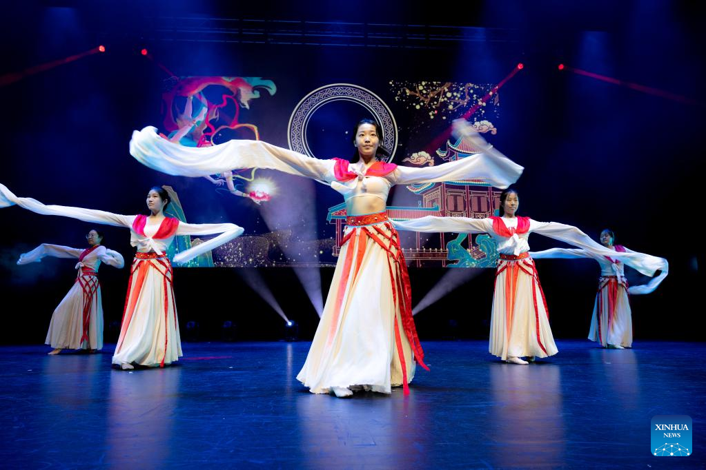 Artists perform during the 2023 Happy Chinese New Year Glories of Huaxing Gala Night in Auckland, New Zealand, Jan. 29, 2023. (Photo by Sun Xueliang/Xinhua)