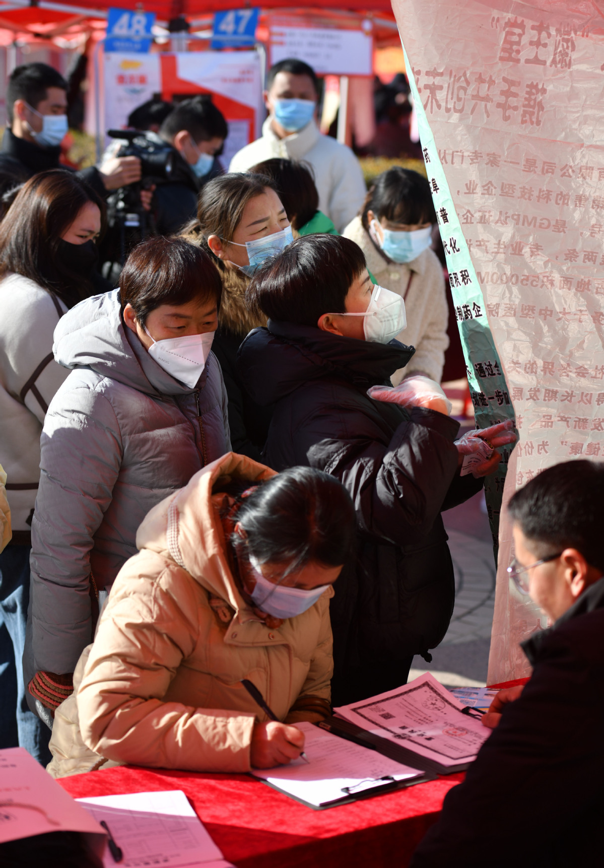 People attend a job fair in Fuyang, Anhui province, on Sunday. The Ministry of Human Resources and Social Security has launched a nationwide campaign to bring together recruiters and job seekers. The events, which began this month, will continue till March.
