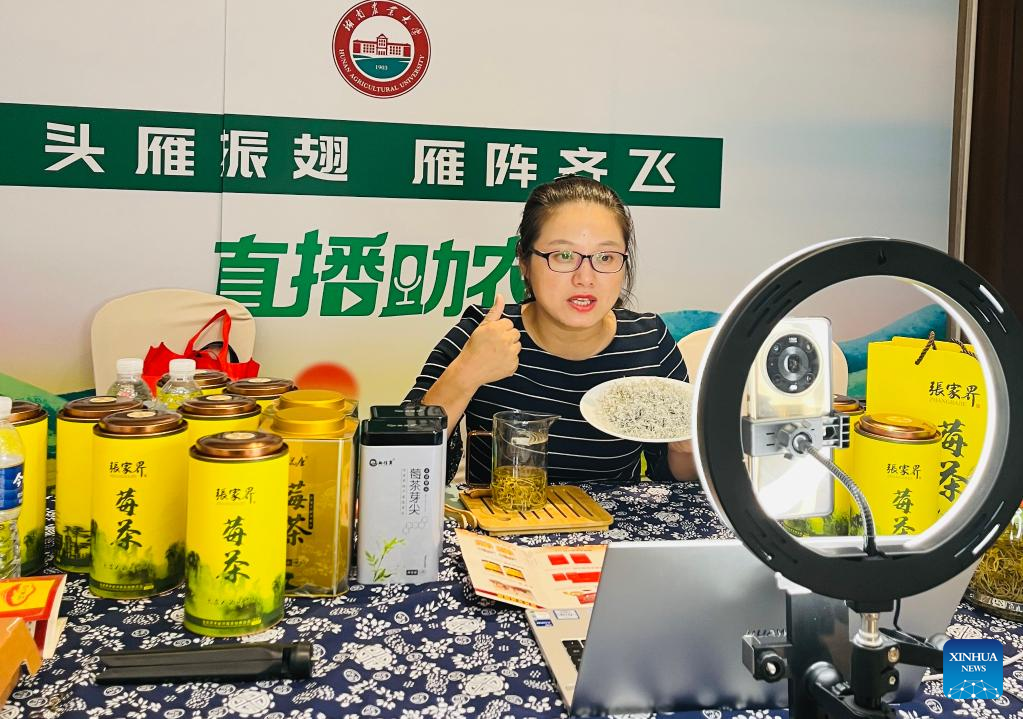 "In addition to lucid water and lush mountains, Zhangjiajie is also known for its unique agricultural goods, like this snow-white vine tea in my hand...," Li introduced to the audience.