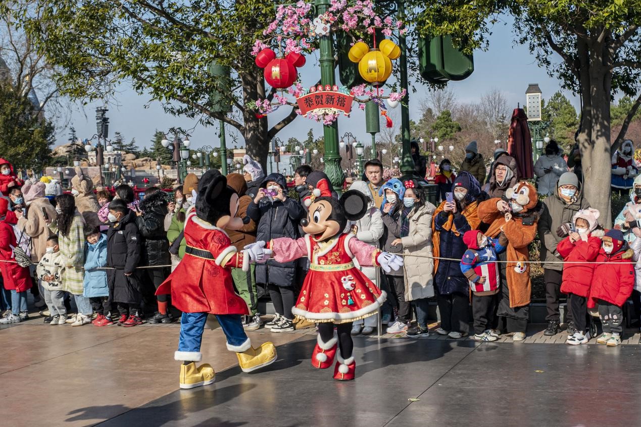 Photo taken on Jan. 27, 2023 shows tourists visiting Shanghai Disneyland theme park. (People's Daily Online/Wang Chu)