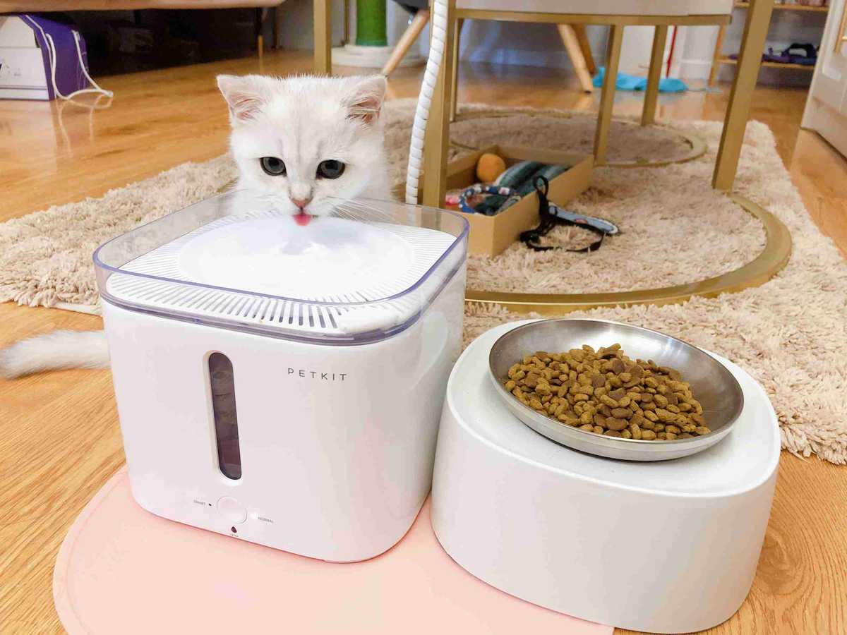 A cat drinks water from a smart drinking fountain at its home in Beijing. (OUYANG SHIJIA/CHINA DAILY)