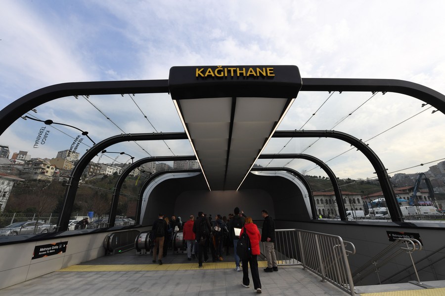 People enter the Kagithane station of a new metro line connecting central Istanbul and the city's new international airport in Istanbul, Türkiye, Jan. 22, 2023. (Xinhua/Shadati)