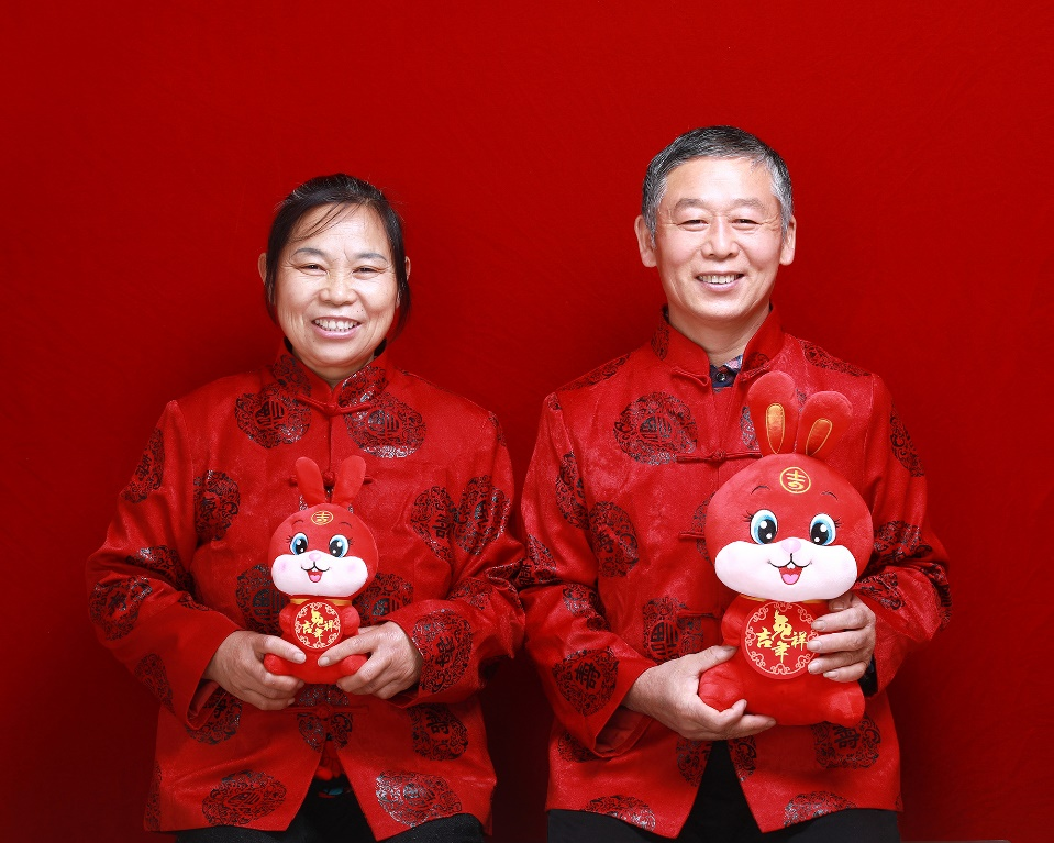 The photo, which had already been framed, had a very festive feel. In the photo, the wife Yang and the husband Peng, with happy smiles on their faces, are dressed in traditional Chinese garments and holding rabbit-shaped stuffed toys.