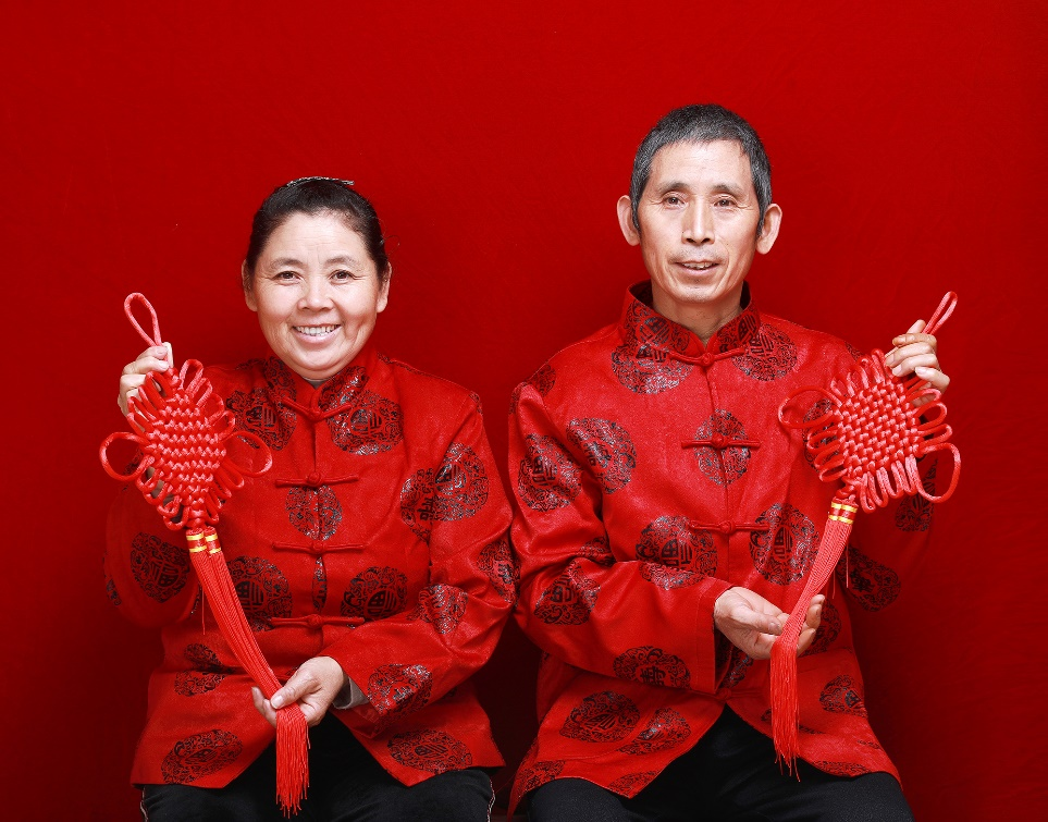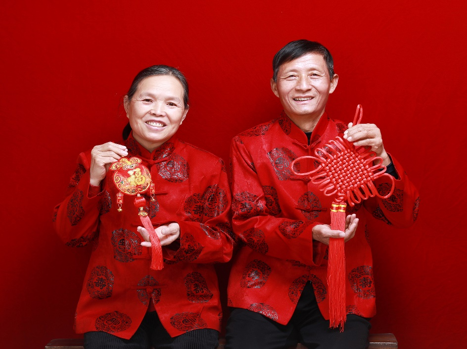 A photo of Yang Xiuzhen and Peng Lianjing, a sanitation worker couple in Huangyan district, Taizhou City, east China's Zhejiang Province. The photo was taken for the Spring Festival for free by local photographer Wang Minzhi. (Photo/China Media Group)
