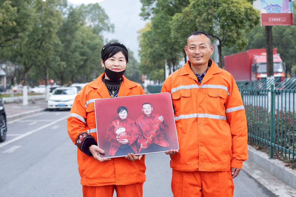 Wang, a local photographer in Huangyan district, has taken photos for nearly 50 sanitation worker couples for free over the past three years.