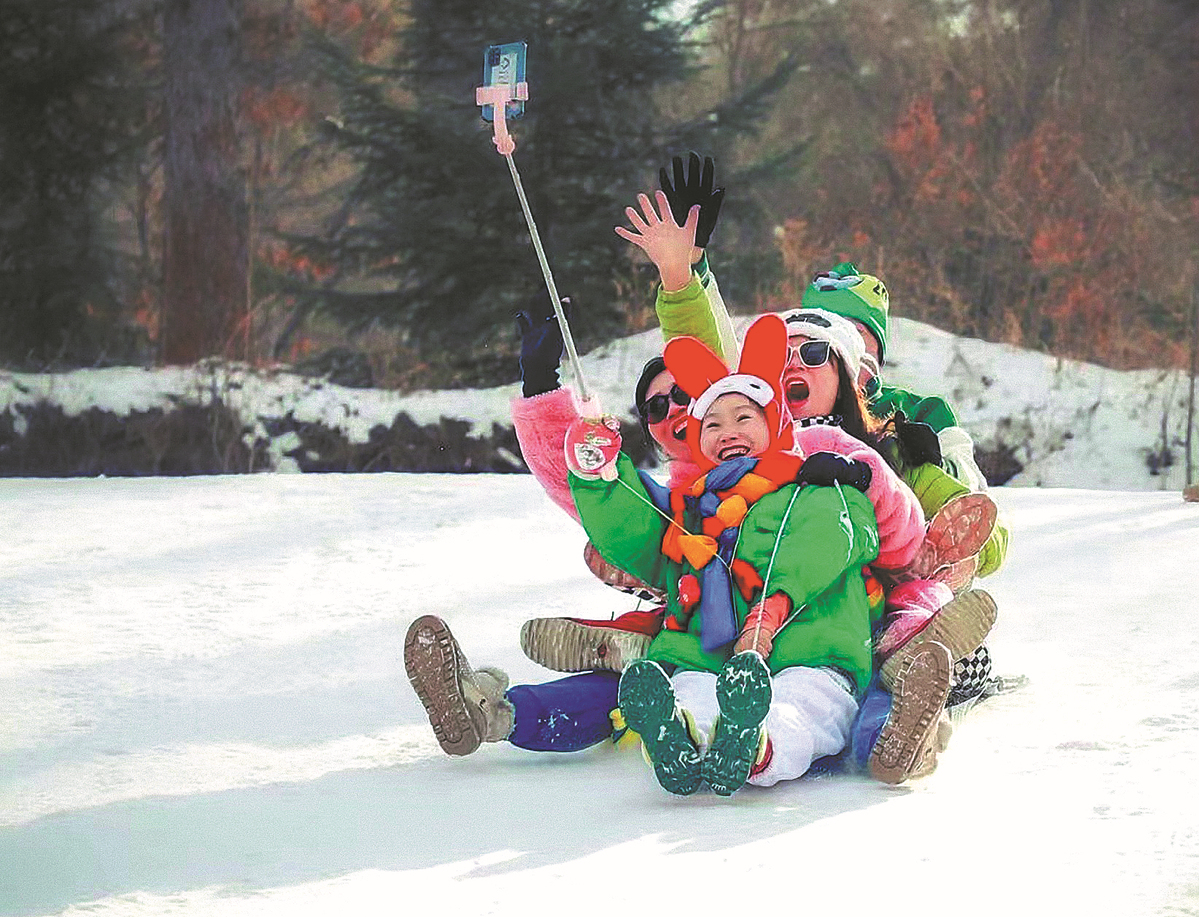 Tourists have fun at a ski resort in Changchun, Jilin province, on Saturday. [Photo by Wang Qiang/For China Daily]