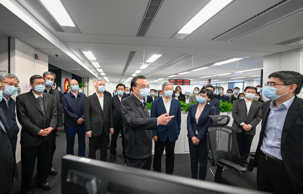Chinese Premier Li Keqiang speaks with the staff at the investment center of the State Administration of Foreign Exchange, Jan. 30, 2023. Li on Monday paid a visit to the People's Bank of China and the State Administration of Foreign Exchange, where he chaired a symposium. (Xinhua/Li Xueren)