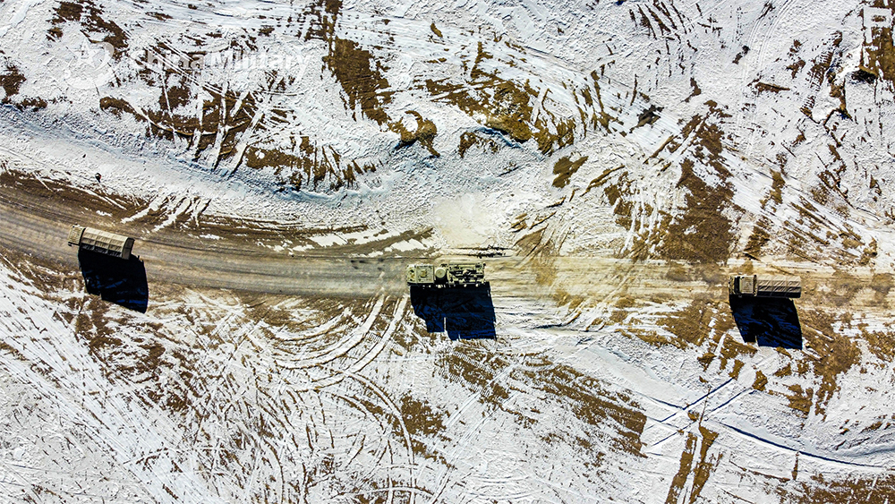 Military vehicles attached to a regiment under the PLA Xinjiang Military Command maneuver quickly en route to the designated area at the elevation of 5300 meters in the real-combat training in middle January, 2023. (eng.chinamil.com.cn/Photo by Chen Ming)