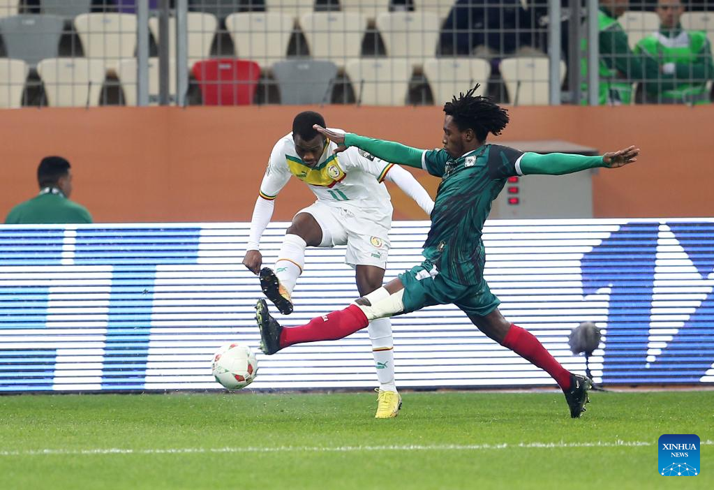 Senegal's Lamine Camara (1st R) breaks through during the semifinal match of the 7th African Nations Championship between Senegal and Madagascar at Nelson Mandela Stadium in Algiers, Algeria, Jan 31, 2023. (Xinhua)