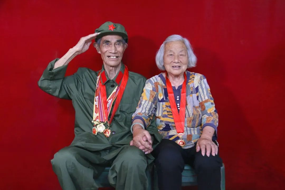 For 55 years, the couple had dreamed of having their wedding photos taken. Their dream came true. In one photo, Li, clad in a red wedding dress, smiles broadly while Ren holds her with his left hand and salutes with his right hand.