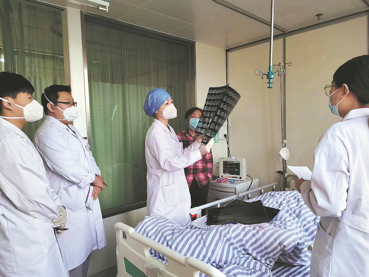 A doctor examines a patient's COVID-19 test result at the Affiliated Hospital of Hebei University. CHINA DAILY