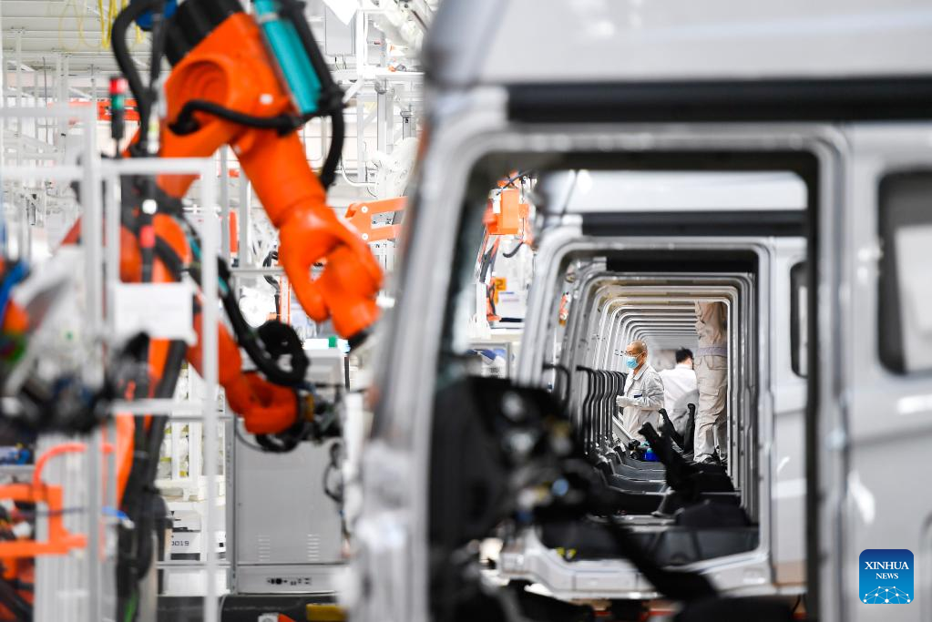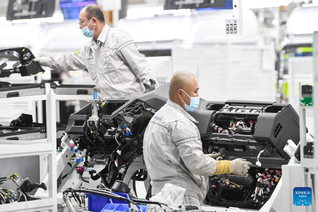 Workers work at an intelligent plant for manufacturing the FAW Jiefang J7 trucks in Changchun, northeast China's Jilin Province, Jan. 31, 2023. Chinese truck maker FAW Jiefang has kick-started full production after the Spring Festival holiday. (Xinhua/Xu Chang)