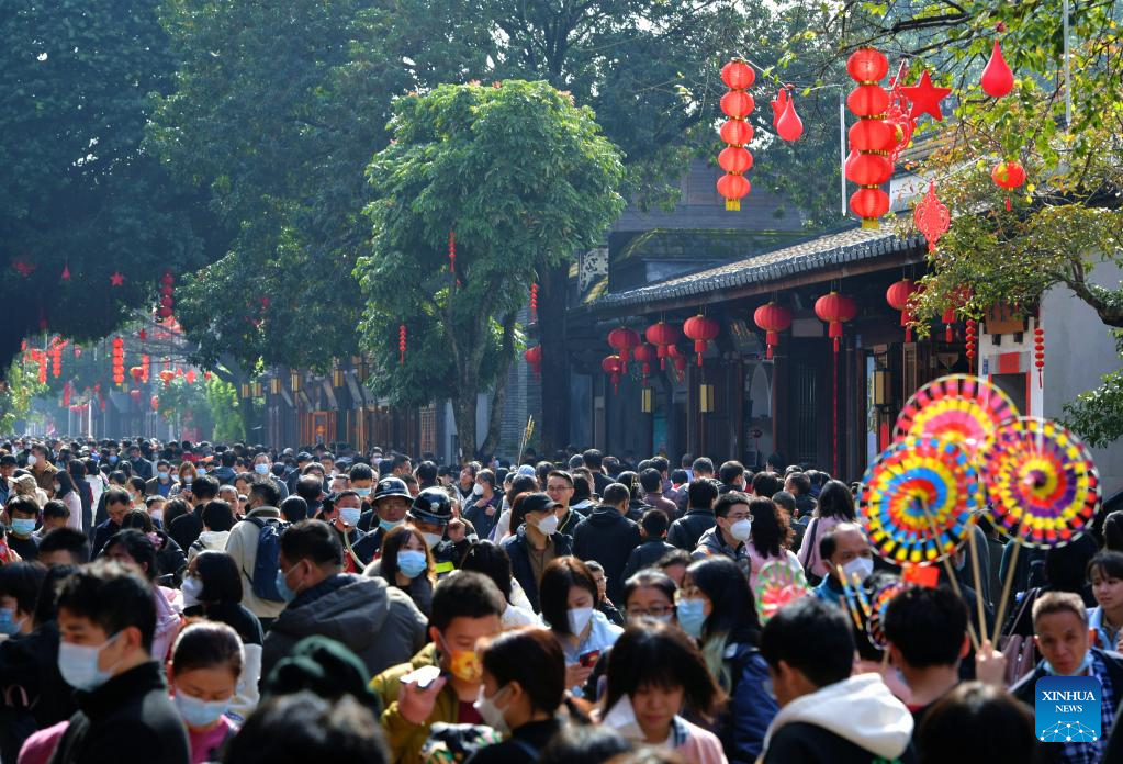 People visit Sanfangqixiang (Three Lanes and Seven Alleys), a historic neighborhood in Fuzhou, east China's Fujian province, Jan 22, 2023. [Photo/Xinhua]