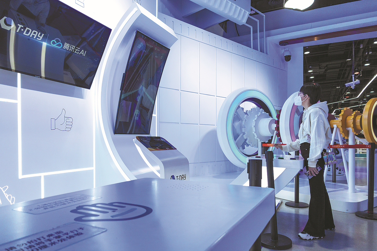A visitor checks out Tencent artificial intelligence products at China Science and Technology Museum in Beijing in January. The tech company's digital ecosystem is expected to help create 31.8 million new jobs and 147 new job categories over the next five years. [HUANG YONG/FOR CHINA DAILY]