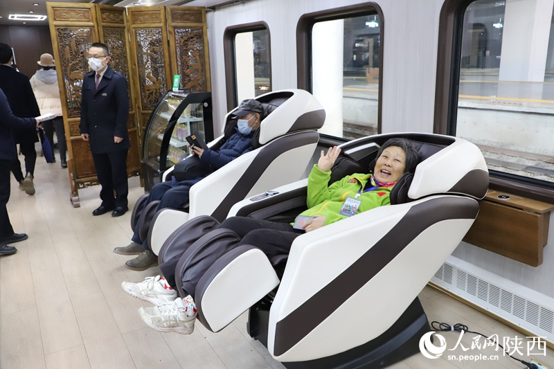 A dedicated tourist train from Xi'an, capital of northwest China's Shaanxi Province, to Zhashui county in Shangluo city of Shaanxi, is equipped with several recreational facilities, including mahjong tables, karaoke machines, mini movie theaters, and massage chairs. (People's Daily Online/Zou Xing)
