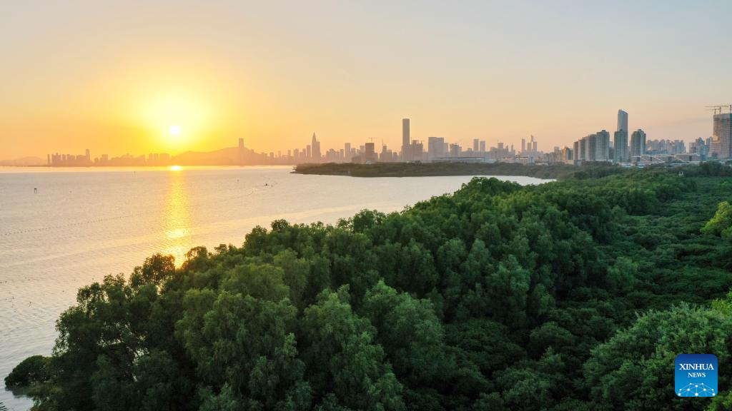 This aerial photo taken on Feb. 1, 2023 shows the view of a mangrove wetland in Futian National Nature Reserve in Shenzhen, south China's Guangdong Province. (Xinhua/Liang Xu)