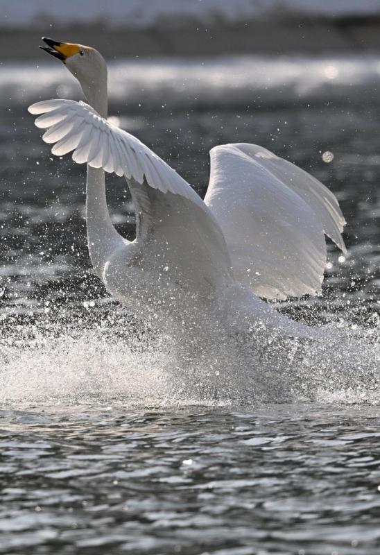 Swans play on the Peacock River in Korla city, northwest China's Xinjiang Uygur autonomous region, Feb 2, 2023. (Photo: China News Service/ Que Hure)