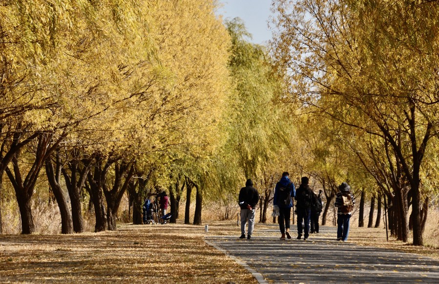 This photo taken on Nov. 1, 2022 shows people visiting the Yeya (Wild Duck) Lake national wetland park in Yanqing District of Beijing, capital of China. (Xinhua/Li Xin)