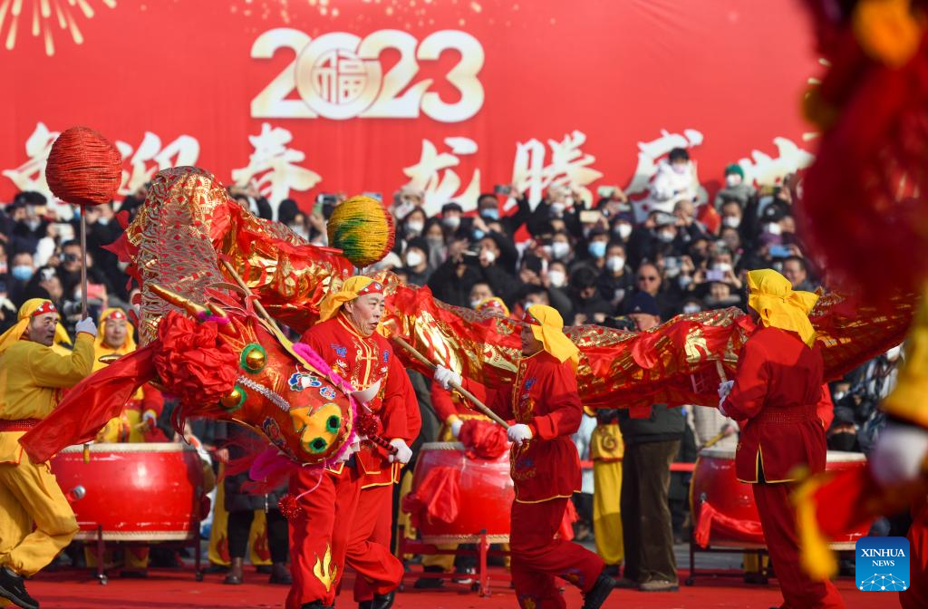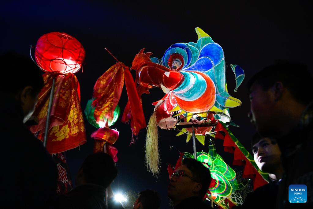 Folk artists perform in Yuanshi County of Shijiazhuang City, north China's Hebei Province, Feb. 5, 2023. Various events are held across the country to celebrate the Lantern Festival, the 15th day of the first month of the Chinese lunar calendar, which falls on Feb. 5 this year. (Photo by Liang Zidong/Xinhua)