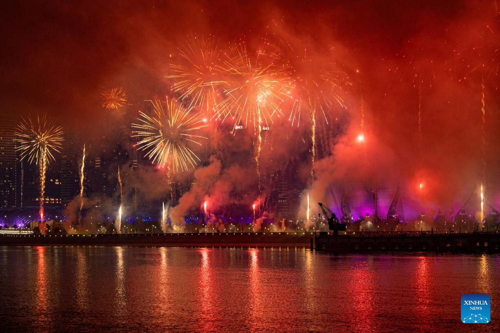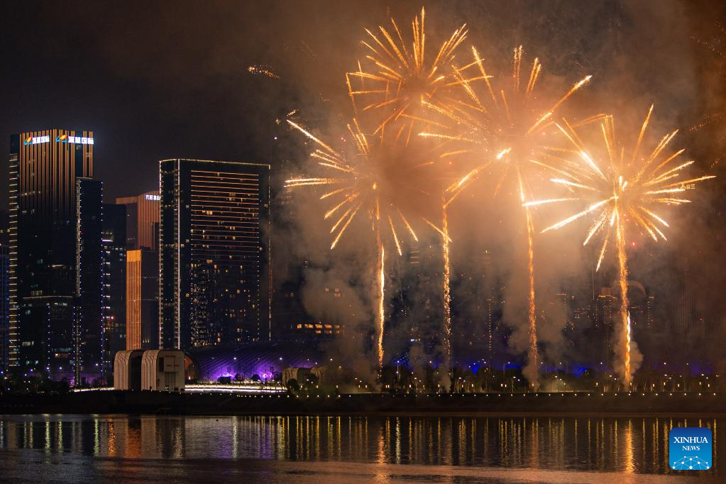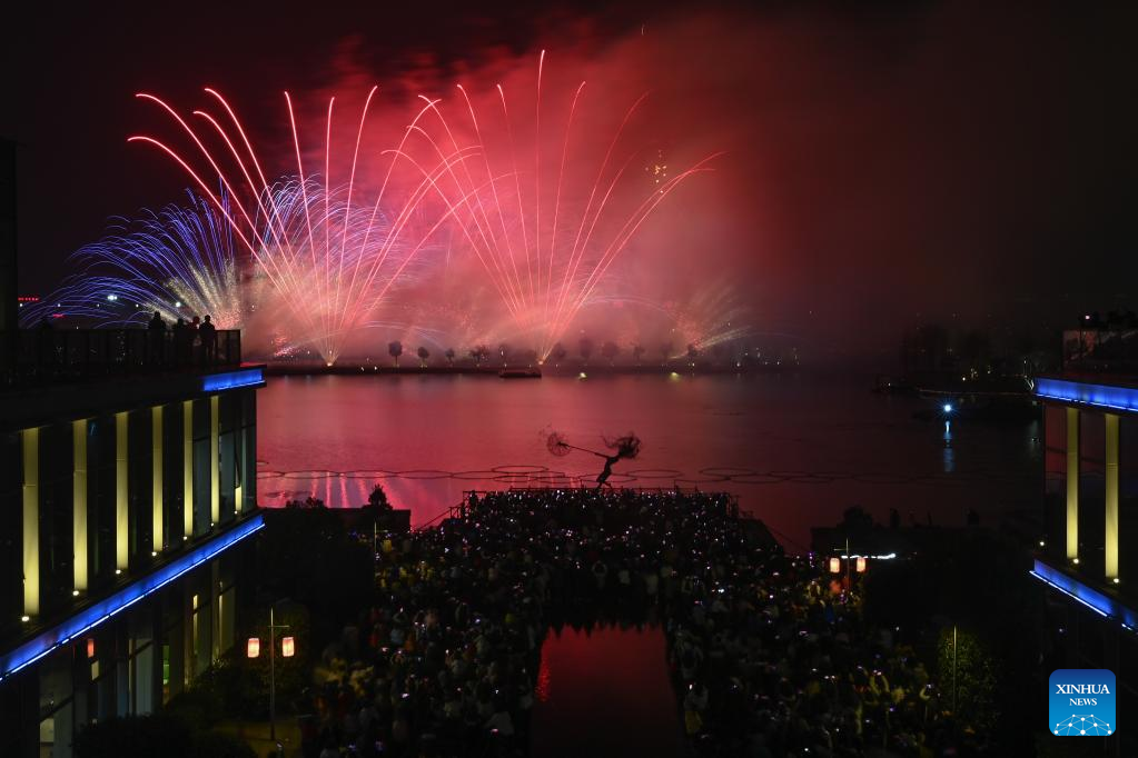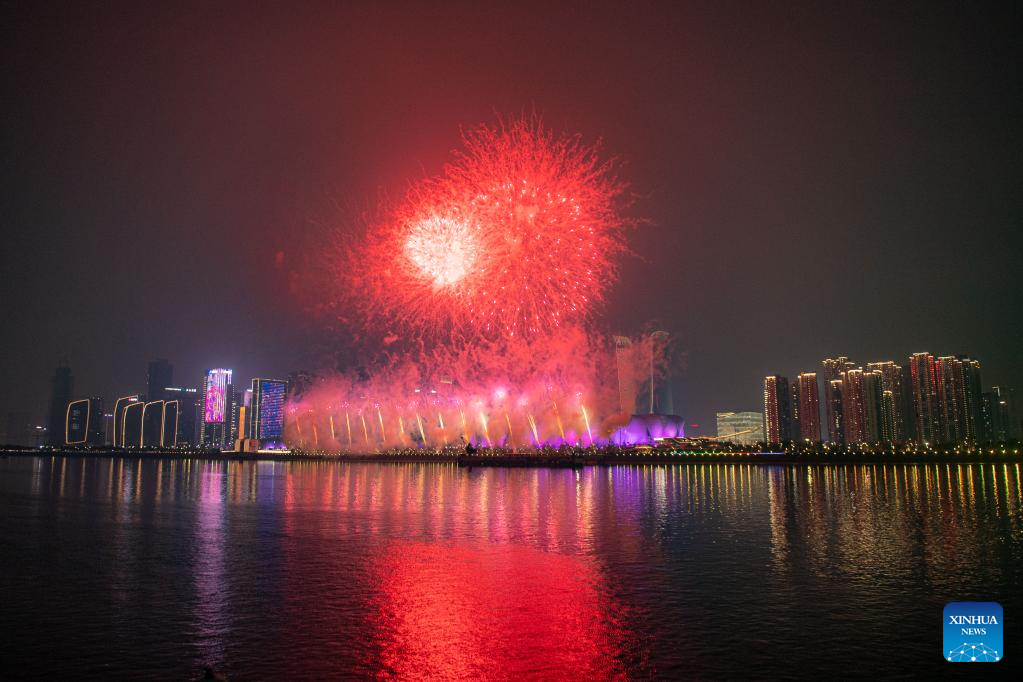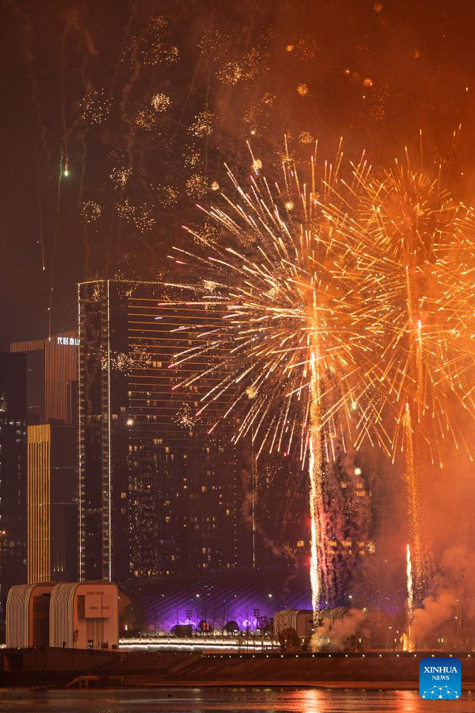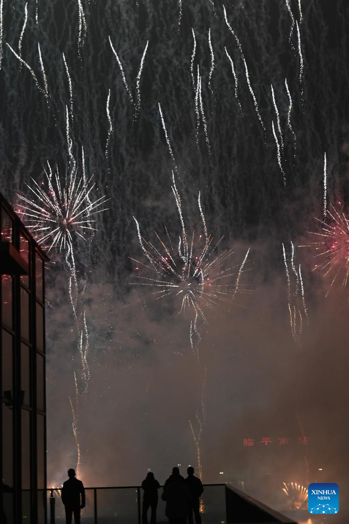 Fireworks explode in celebration of the Lantern Festival in Hangzhou, capital of east China's Zhejiang Province, Feb. 5, 2023. (Xinhua/Jiang Han)