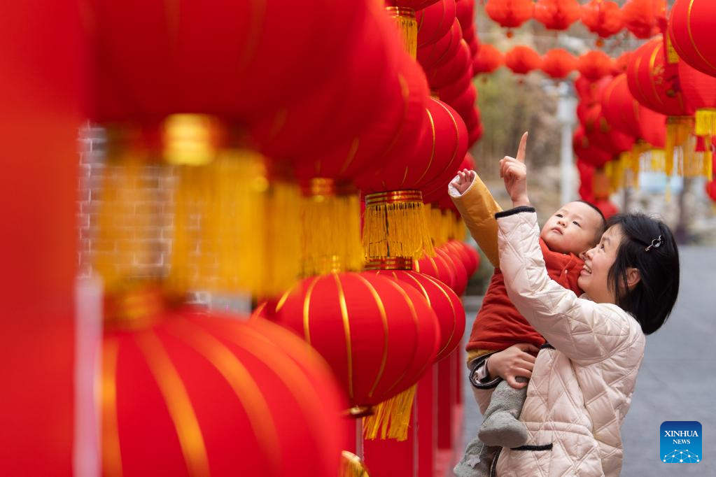 People visit a temple fair at Zhongnanmen historical and cultural tourist area in Tongren City, southwest China's Guizhou Province, Feb. 5, 2023. Various events are held across the country to celebrate the Lantern Festival, the 15th day of the first month of the Chinese lunar calendar, which falls on Feb. 5 this year. (Photo by Peng Jun/Xinhua)
