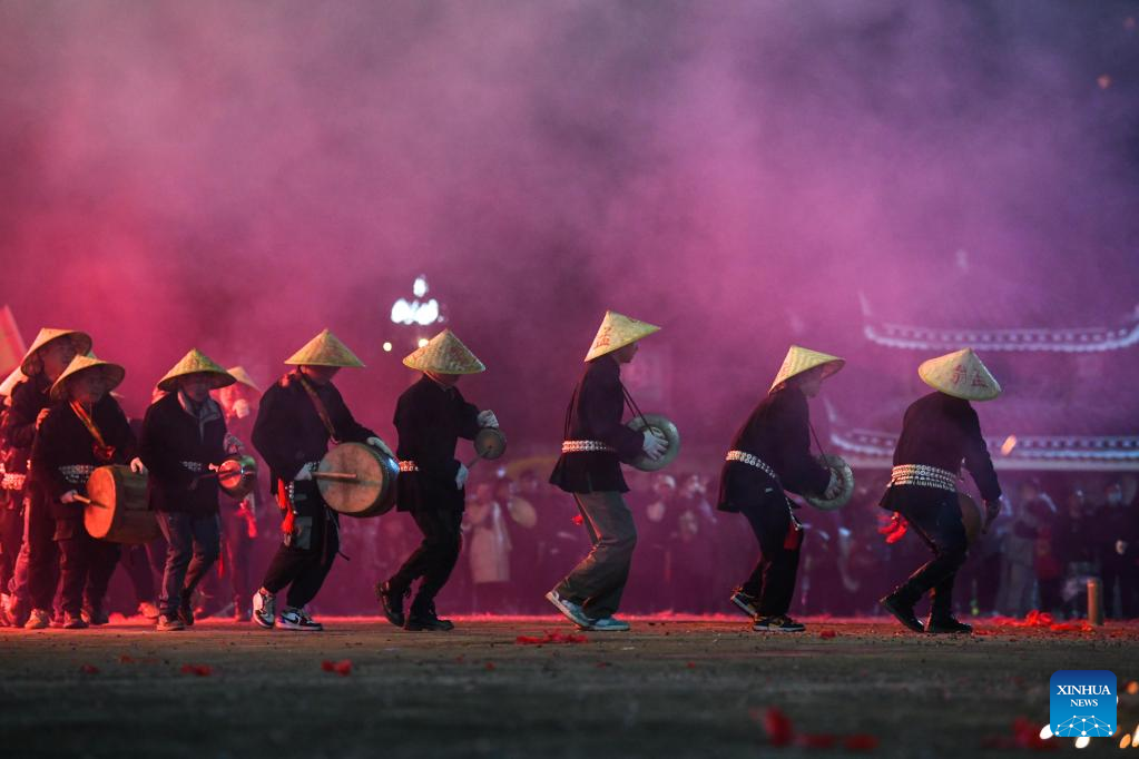 People perform in Luxian County, southwest China's Sichuan Province, Feb. 5, 2023. Various events are held across the country to celebrate the Lantern Festival, the 15th day of the first month of the Chinese lunar calendar, which falls on Feb. 5 this year. (Xinhua/Jiang Hongjing)