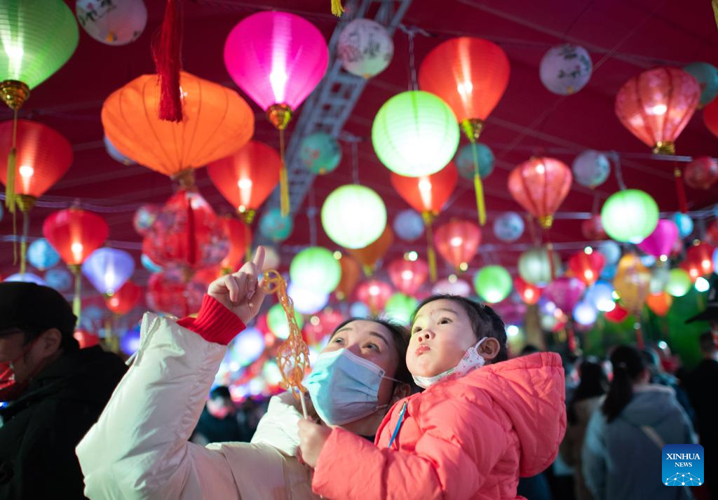 Tourists visit a lantern fair at the Fuzi (Confucius) Temple scenic area in Nanjing, east China's Jiangsu Province, Feb. 4, 2023. Lantern fairs and light shows were held to celebrate the Lantern Festival, which falls on Feb. 5 this year. (Xinhua/Li Bo)