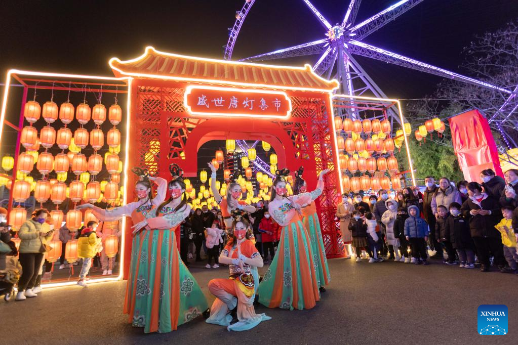 People perform in Baiyin City, northwest China's Gansu Province, Feb. 5, 2023. Various events are held across the country to celebrate the Lantern Festival, the 15th day of the first month of the Chinese lunar calendar, which falls on Feb. 5 this year. (Xinhua/Chen Bin)