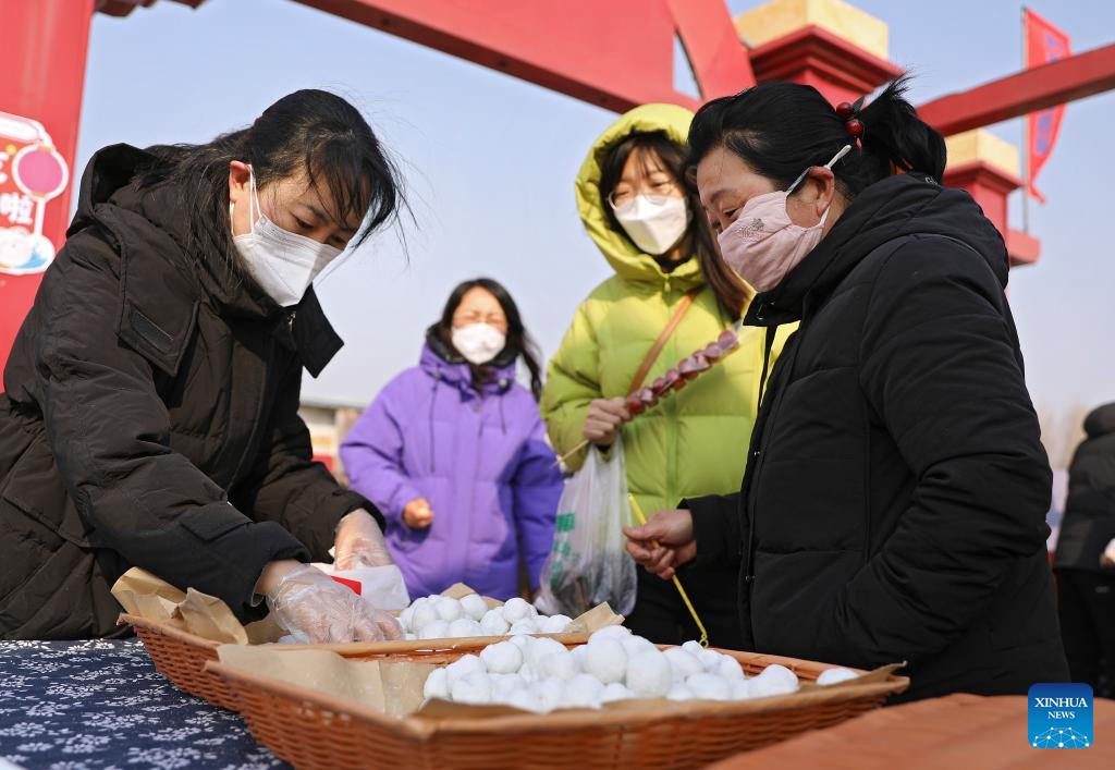People purchase Yuanxiao, sweet glutinous rice dumplings for celebrating the Lantern Festival, at a country fair in Yingkou, northeast China's Liaoning Province, Feb. 5, 2023. People celebrate the Lantern Festival, the 15th day of the first month of the Chinese lunar calendar, with various traditional customs across the country. (Xinhua/Yao Jianfeng)