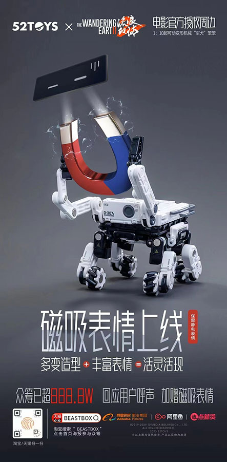 Following the film's premiere, a Chinese culture and media company began a crowdfunding campaign on China's e-commerce platform Taobao to mass-produce merchandise such as robotic dog models and USB flash disks. By the end of January, over 433,000 orders had been placed, bringing in over 100 million yuan, surpassing the initial goal of 100,000 yuan.