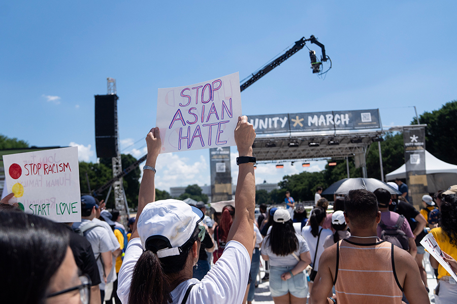 Demonstrators condemn racism against Asians at a rally in Washington, DC, on June 25. [PHOTO by LIU JIE/XINHUA]