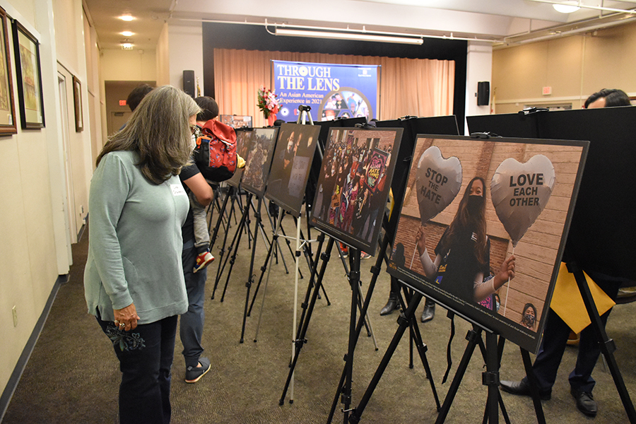 People visit a photo exhibition titled "Through the Lens: An Anti-Asian American Experience in 2021" in the city of Arcadia, in Los Angeles County, on May 21. [PHOTO by ZENG HUI/XINHUA]
