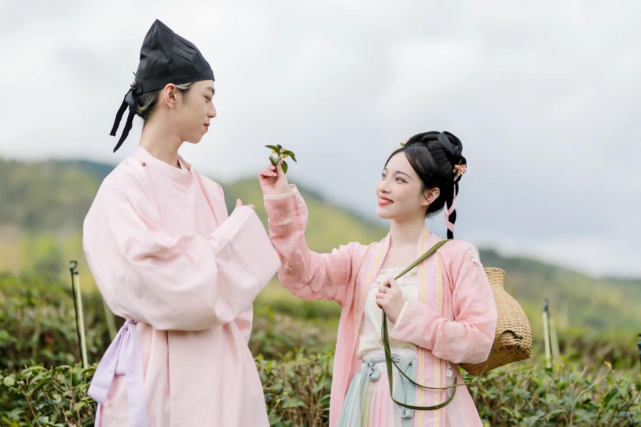 Two Hanfu fans pose for photos in Shuiman township, Wuzhishan city, south China’s Hainan Province. (Photo courtesy of the publicity department of the CPC Wuzhishan Municipal Committee)