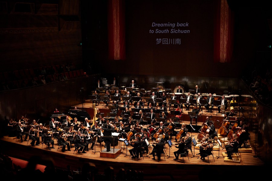 The symphony work "Sichuan Image" is performed during the 10th annual Chinese New Year Concert at the Hamer Hall in Melbourne, Australia on Feb. 4, 2023. (Photo by Laura Manariti/Provided by Melbourne Symphony Orchestra)