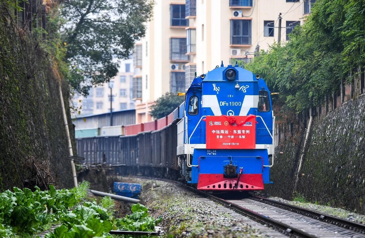 A freight train bound for Chinese sea ports facing ASEAN countries departs from Yichun, east China's Jiangxi province on Jan. 27, 2022. (People's Daily Online/Zhou Liang)