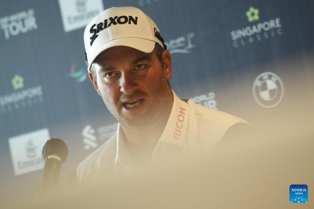Ryan Fox of New Zealand attends the pre-event press conference of Singapore Classic golf tournament at Laguna National Golf Resort Club in Singapore, Feb. 8, 2023. (Photo by Then Chih Wey/Xinhua)