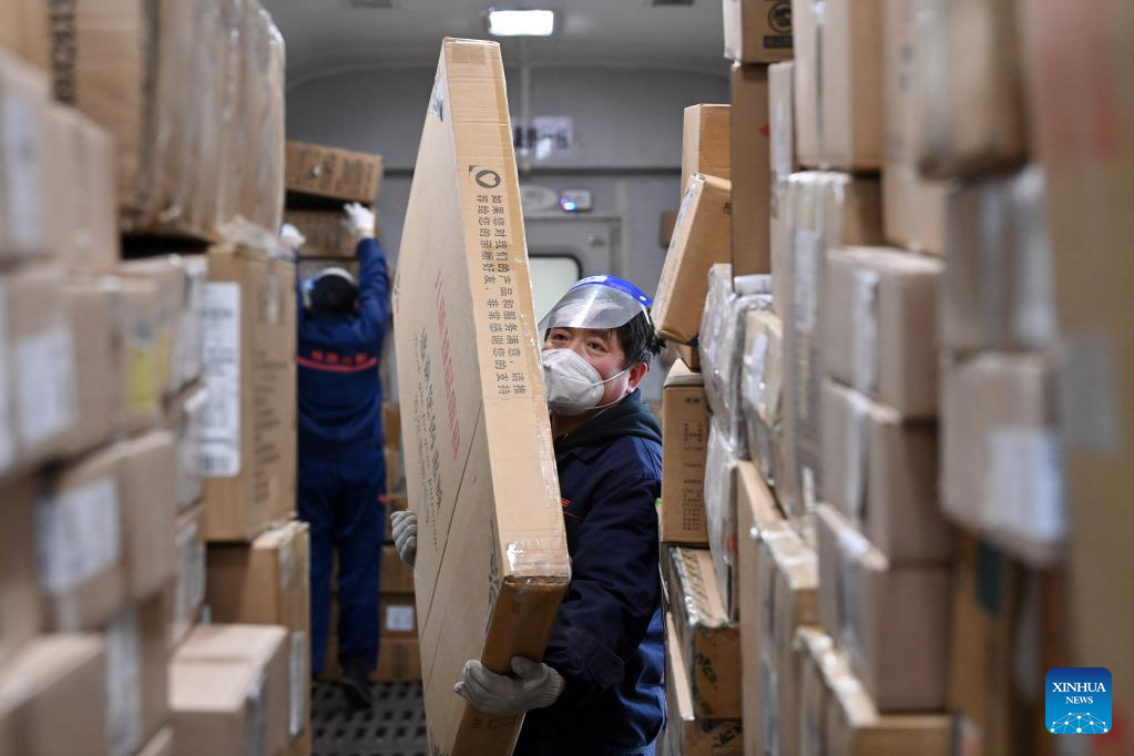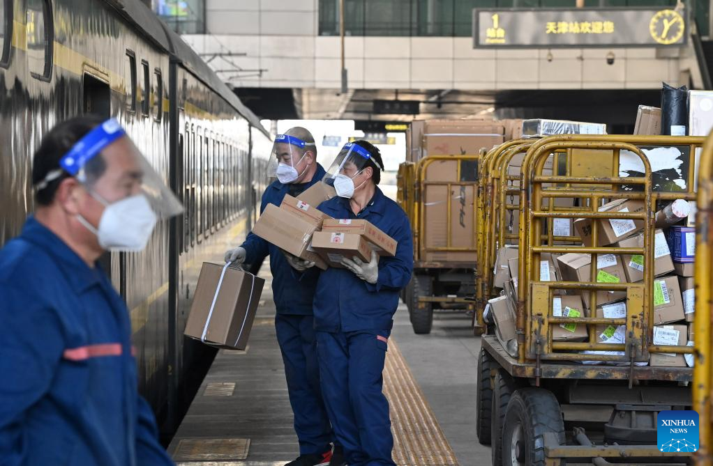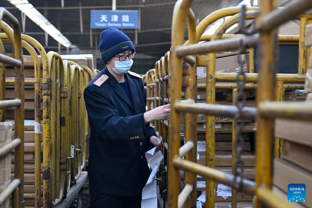 Tianjin Railway Station sees increase in volume of packages after Spring Festival holiday