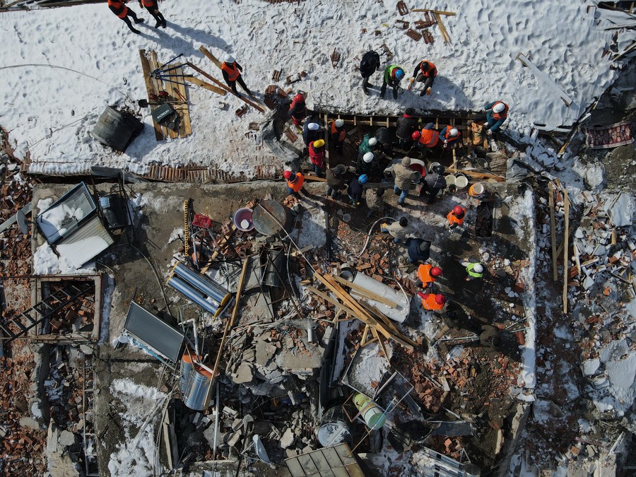 International search and rescue teams, including an 82-member Chinese rescue team that arrived in Türkiye on Wednesday, have poured into the quake zone to assist in rescue efforts in the country.
